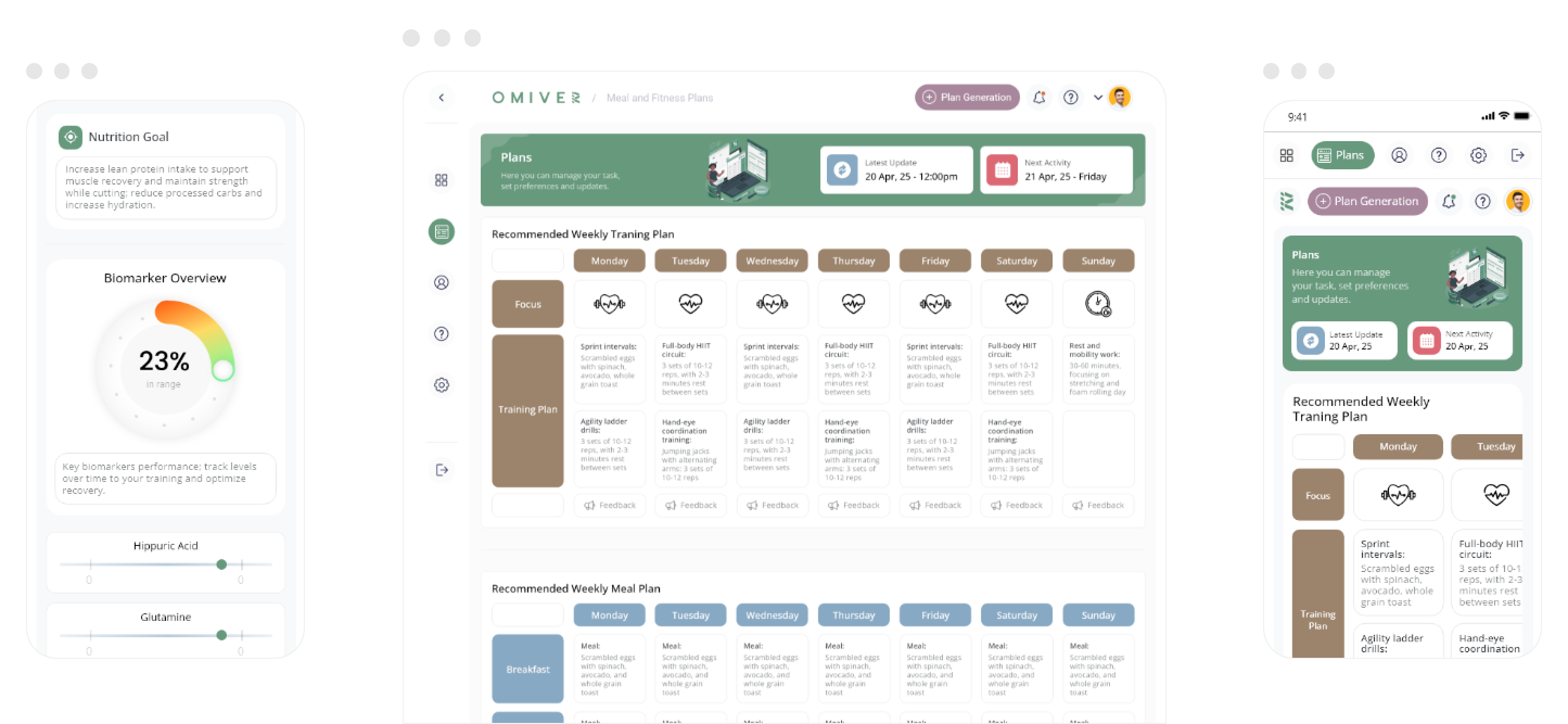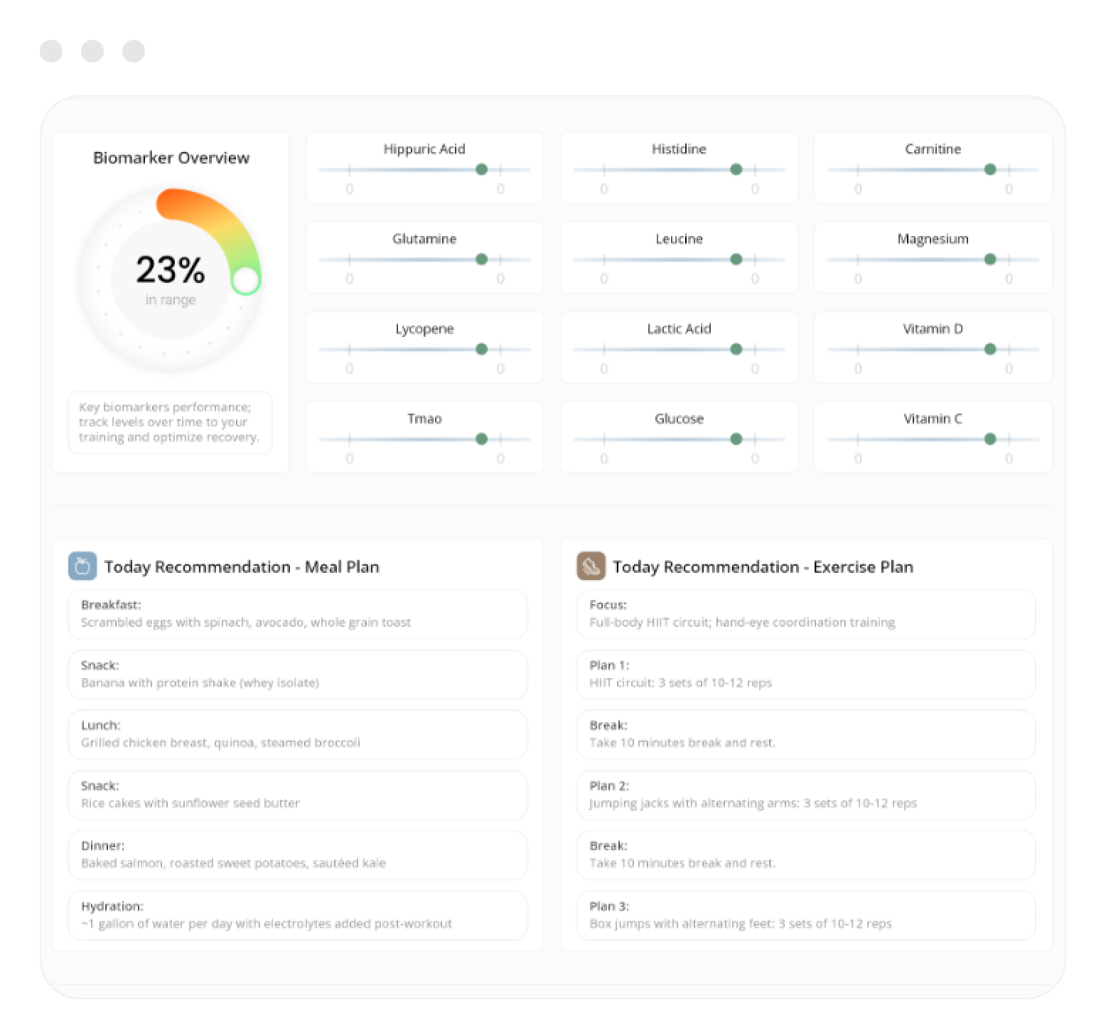 Our platform integrates extensive biomarker data with their lifestyle information generates plans for nutritionists catered to their clients needs, and our AI model adapts by incorporating user feedback and the latest research to refine our recommendations.